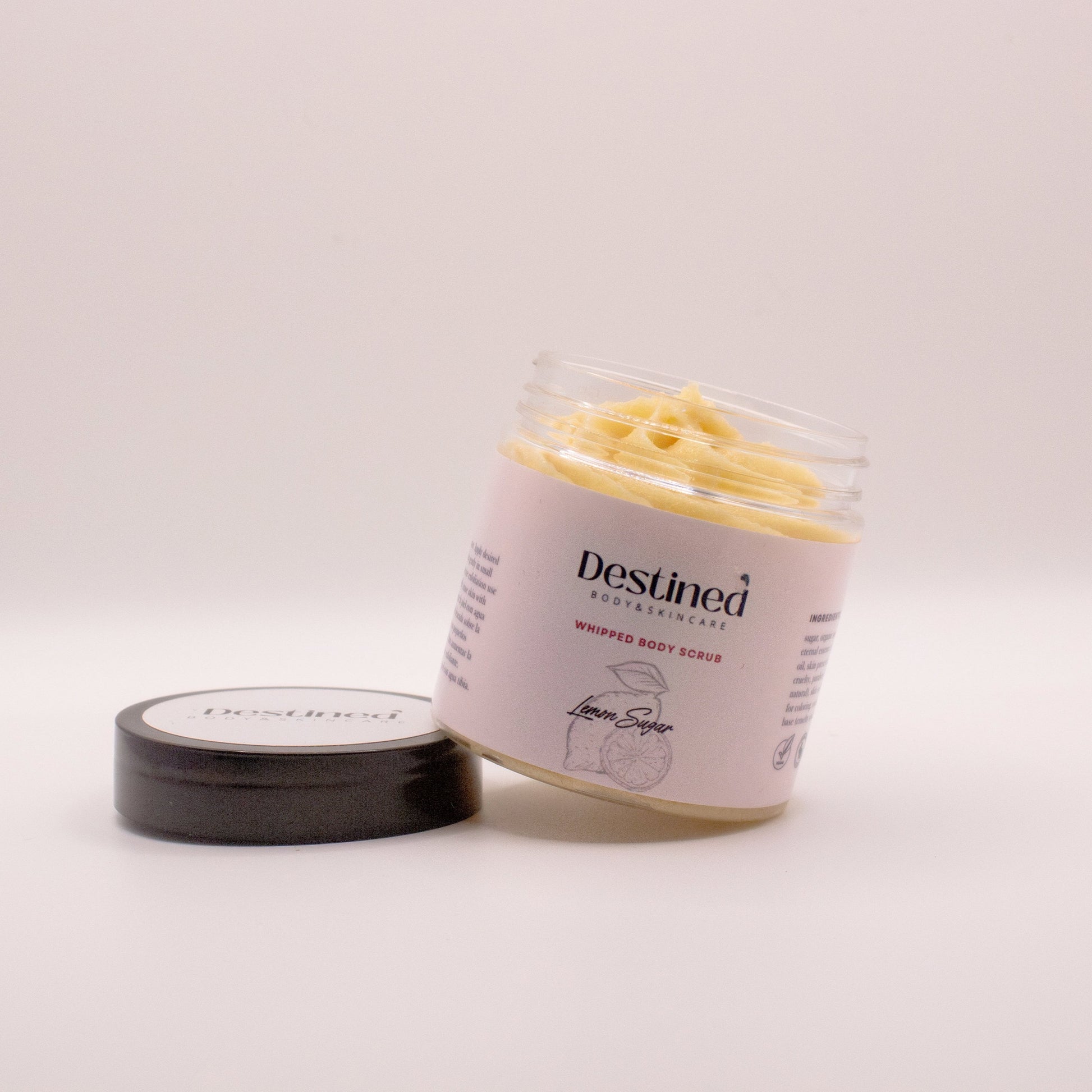 Description ~ our whipped body scrubs are luxuriously smooth, designed to exfoliate and nourish your skin with gentle, organic ingredients. Each scrub leaves your skin feeling soft, hydrated, and refreshed, perfect for a radiant glow.